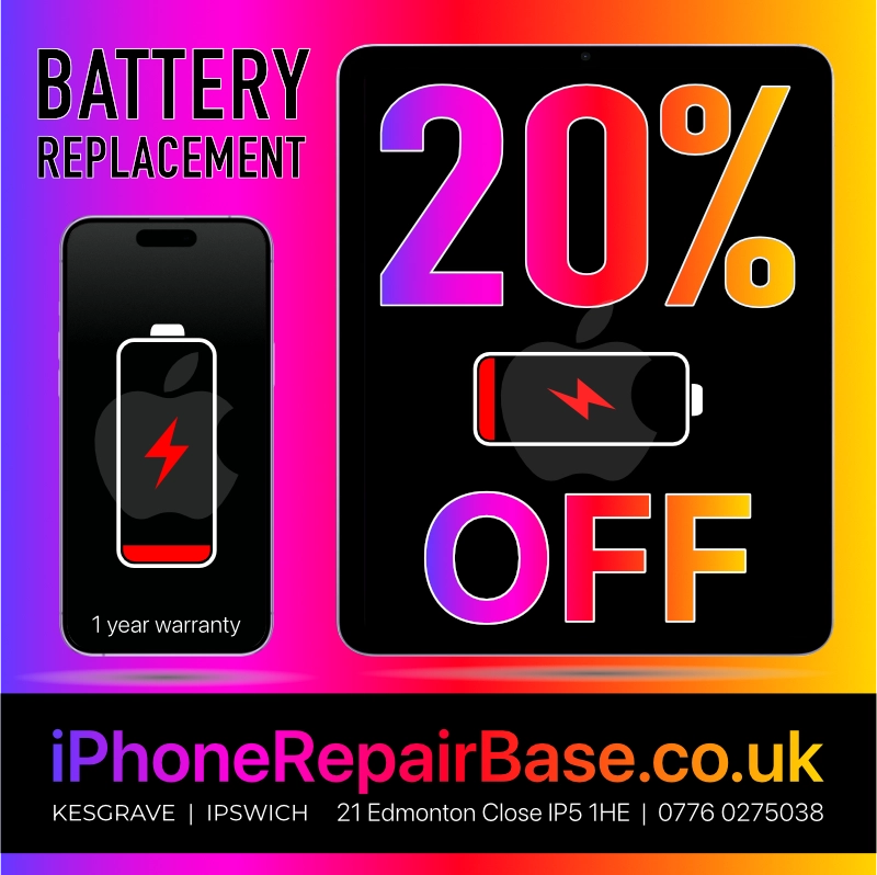 We provide professional iPhone repair in Ipswich, Kesgrave with over 15 years of experience, including iPhone screen repair and iPhone battery repair — often completed in just 10 minutes.